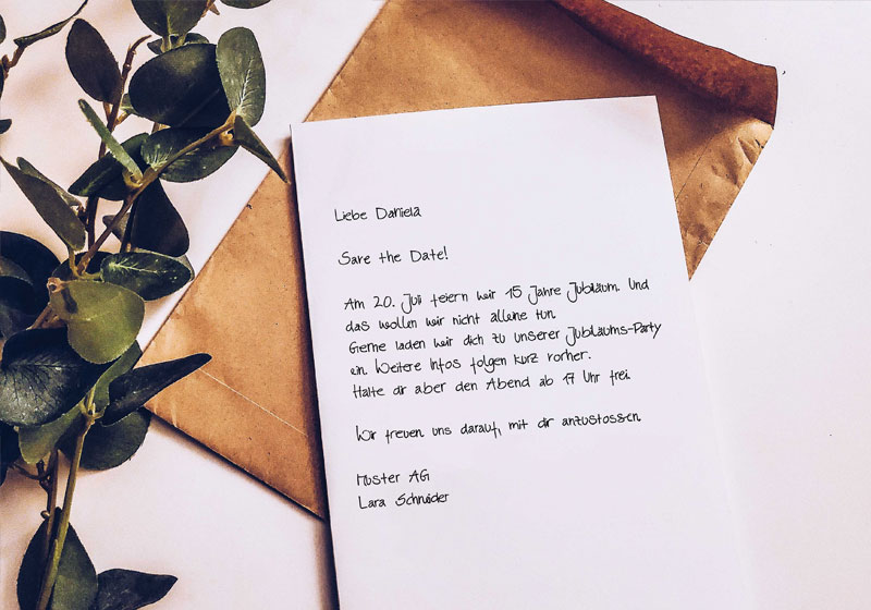 Handgeschriebene Einladung mit adressiertem Kuvert